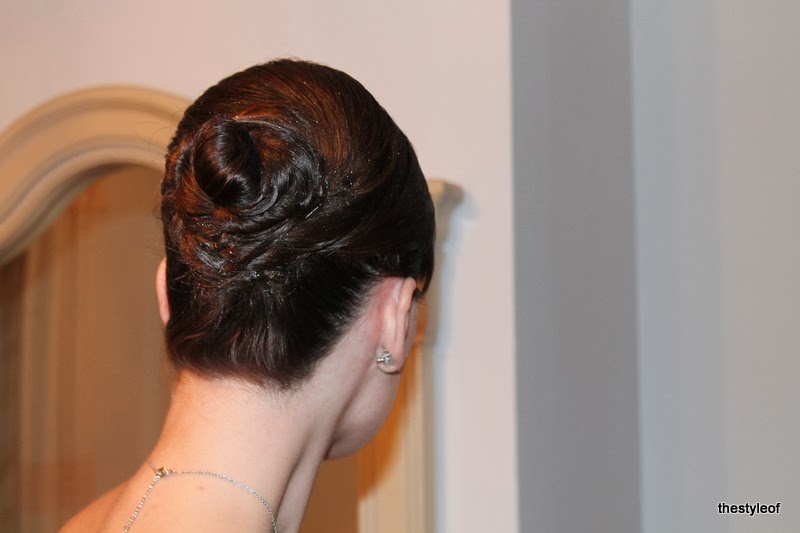 Como siempre confié en mi peluquera, de la la peluqueria Uxia, en Noia, y no me defraudó. Le pedí algo sencillo pero recogido, y acertó por completo.